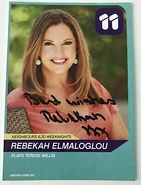 Rebekah Elmaloglou is an Australian actress who played Terese Willis in Neighbours from 2013 to 2022 and for the revival from 2023-2025.